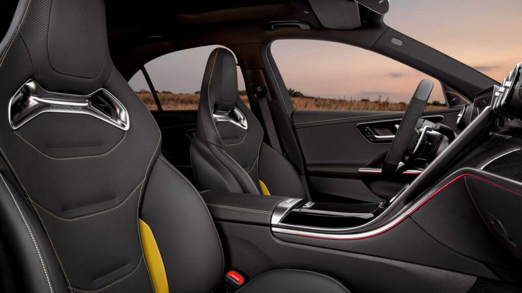 The highlights of the course are the steering wheel with extra mode buttons and new AMG-supportive performance seats.